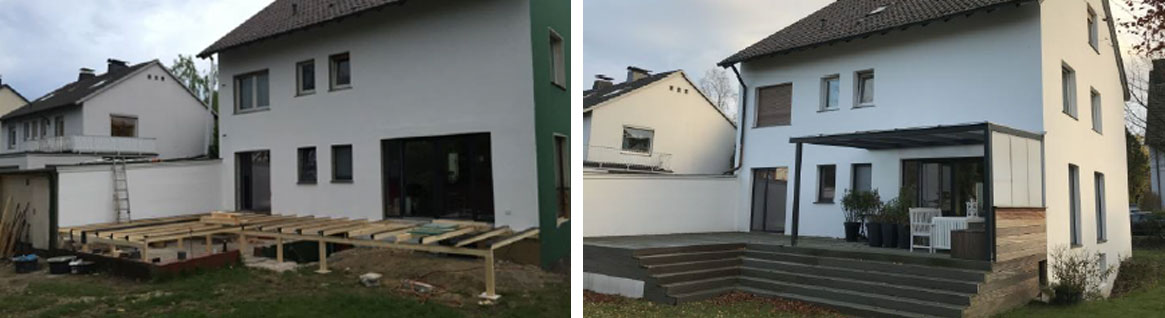 Neue Terrasse mit Überdachung auf der Rückseite ebenerdig mit der Wohnung.