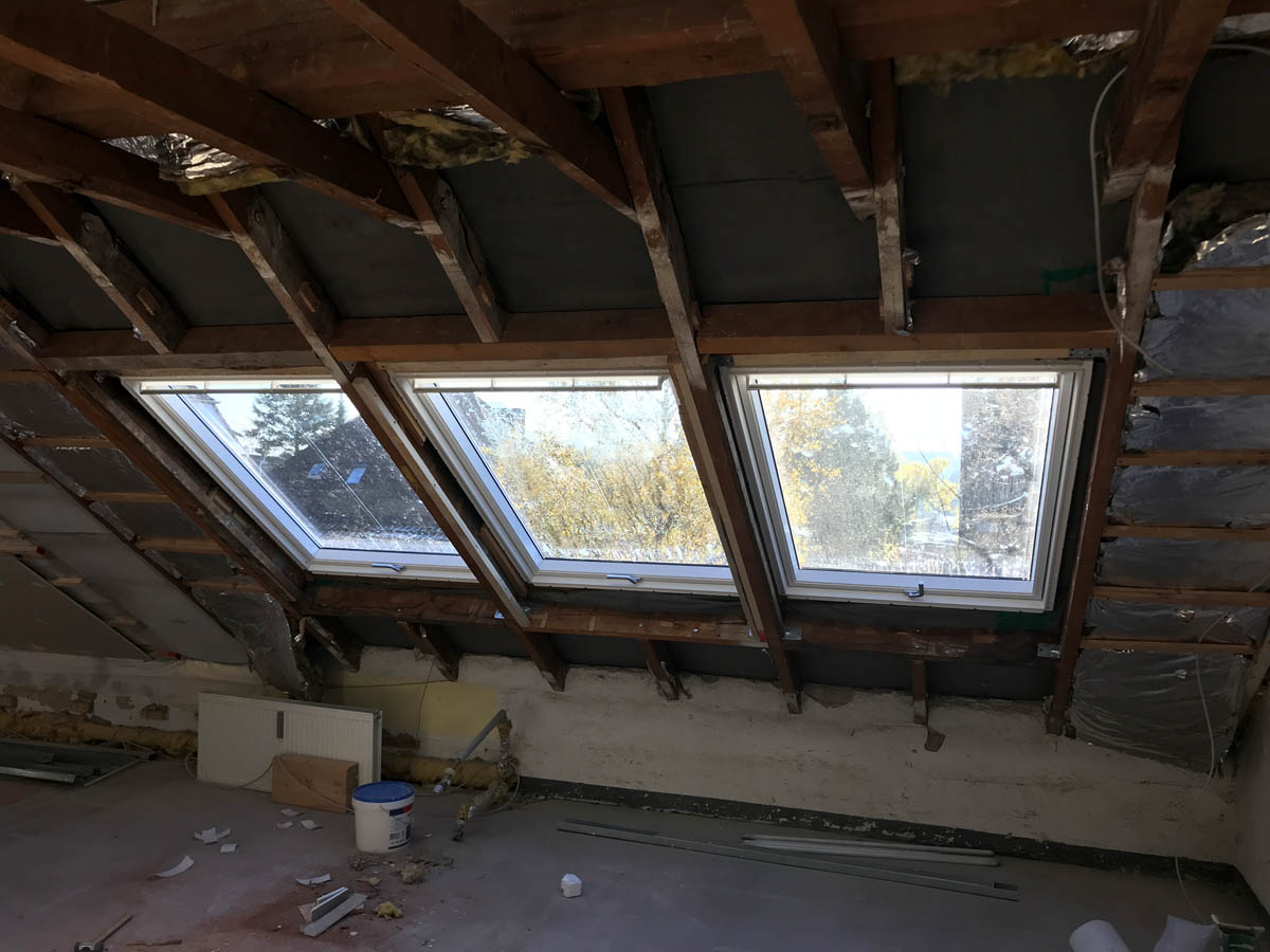 Gewerke: Trockenbau | Innenausbau | Fensterbau (hier mit Standardfenster von Velux)