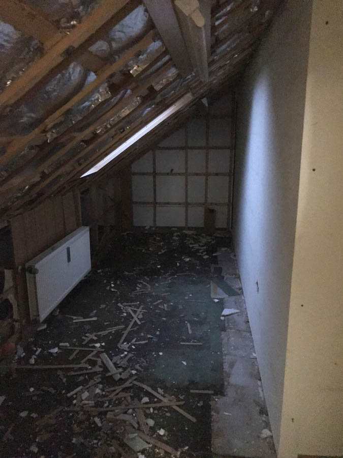 Wände und Zwischendecke zum Kriechboden entfernen.