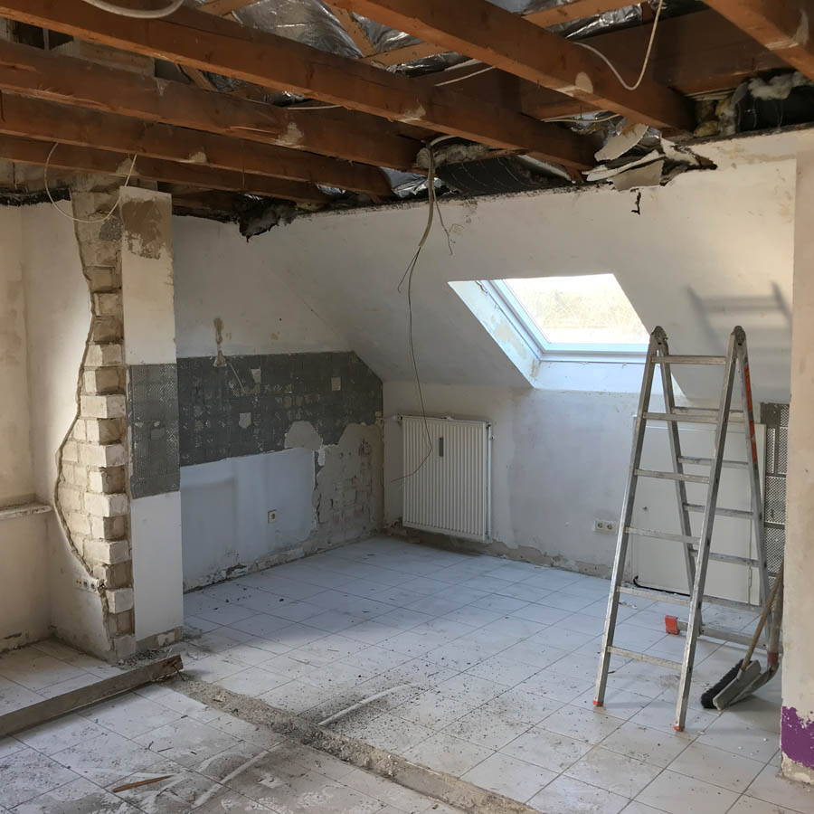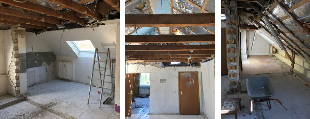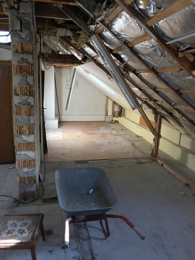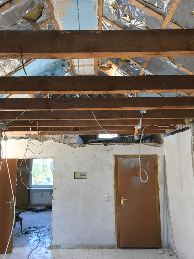 Wände und Zwischendecke zum Kriechboden entfernen.
