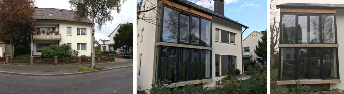 Aus kleinen Fenstern werden bodentiefe, große Fenster aus dem Balkon wird ein großzügig verglaster Wintergarten.