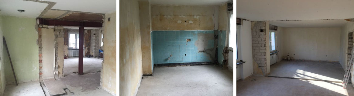 Gewerke: Trockenbau | Innenausbau | Abbrucharbeiten unter Einbeziehung eines Statikers für die Auslegung des Trägers - es wurden sowohl nicht tragende Wände entfernt als auch eine tragende Wand durch einen Träger ersetzt