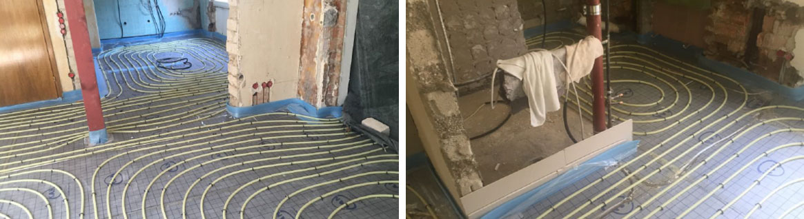 Bestehende Heizungen wurde durch eine Fußbodenheizung ersetzt. Dazu wurde der Estrich erneuert.